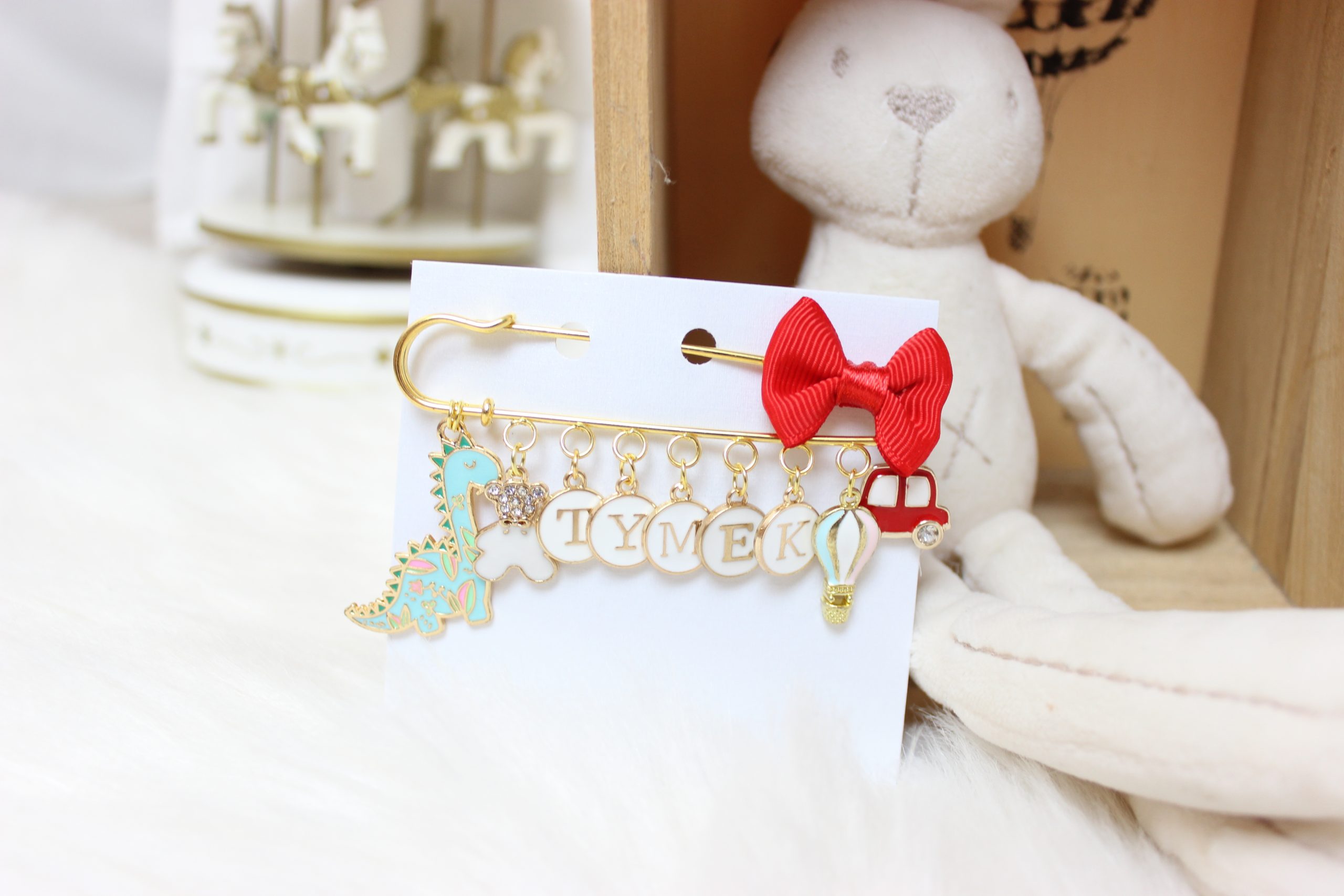 Agrafka w kolorze złotym to idealny prezent na Baby Shower lub po prostu kiedy wybierasz się w odwiedziny do nowonarodzonego dzieciątka.
