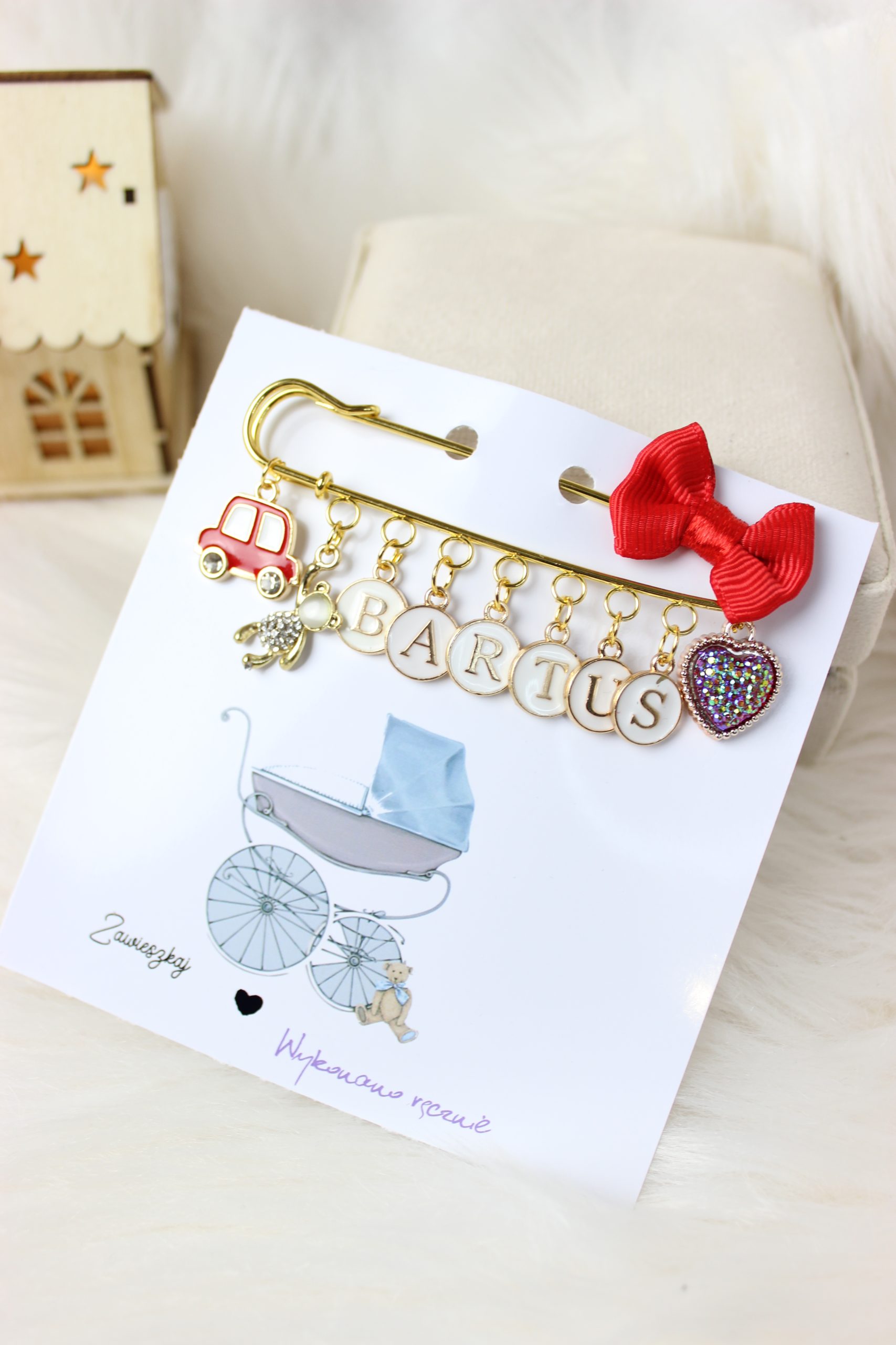 Agrafka w kolorze złotym to idealny prezent na Baby Shower lub po prostu kiedy wybierasz się w odwiedziny do nowonarodzonego dzieciątka.