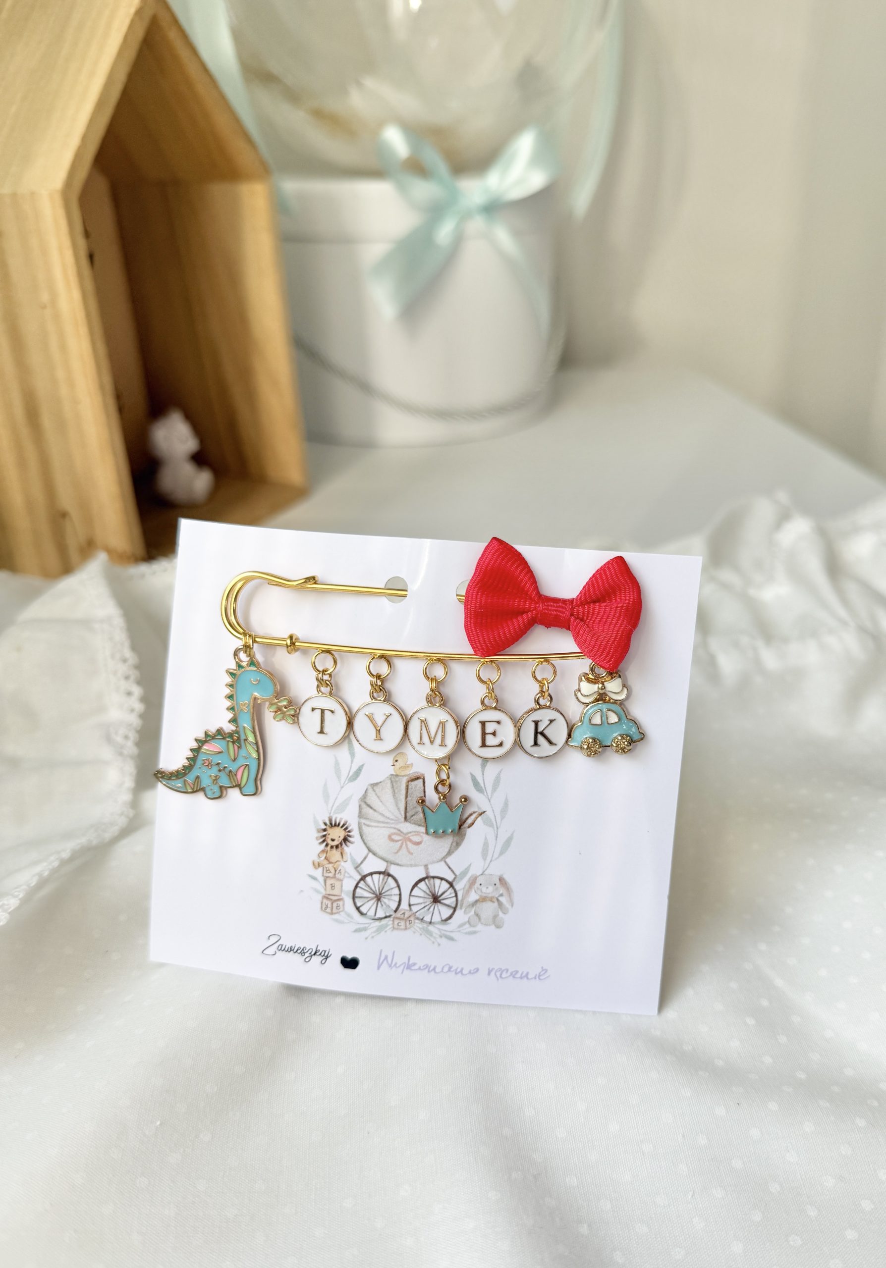 Agrafka w kolorze złotym to idealny prezent na Baby Shower lub po prostu kiedy wybierasz się w odwiedziny do nowonarodzonego dzieciątka.