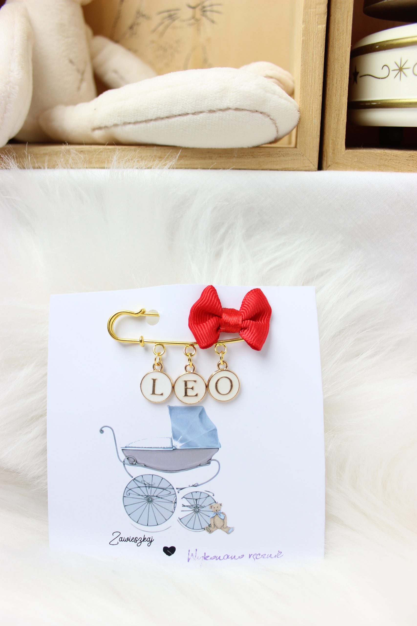 Agrafka w kolorze złotym to idealny prezent na Baby Shower lub po prostu kiedy wybierasz się w odwiedziny do nowonarodzonego dzieciątka.