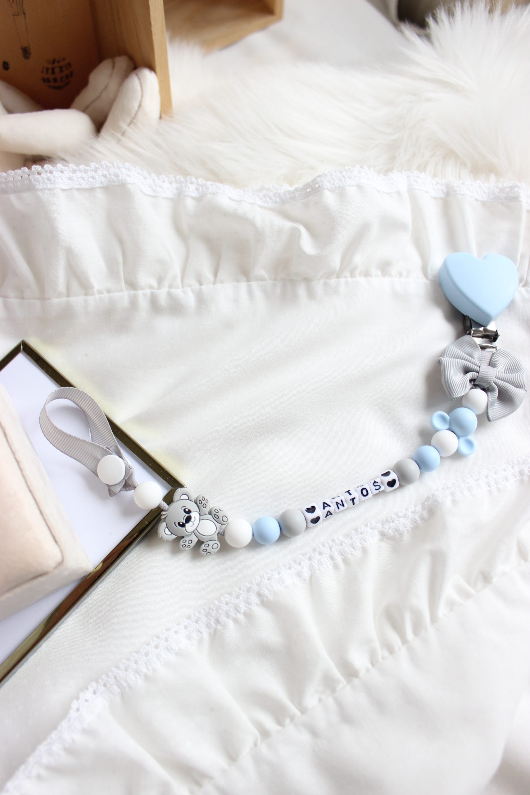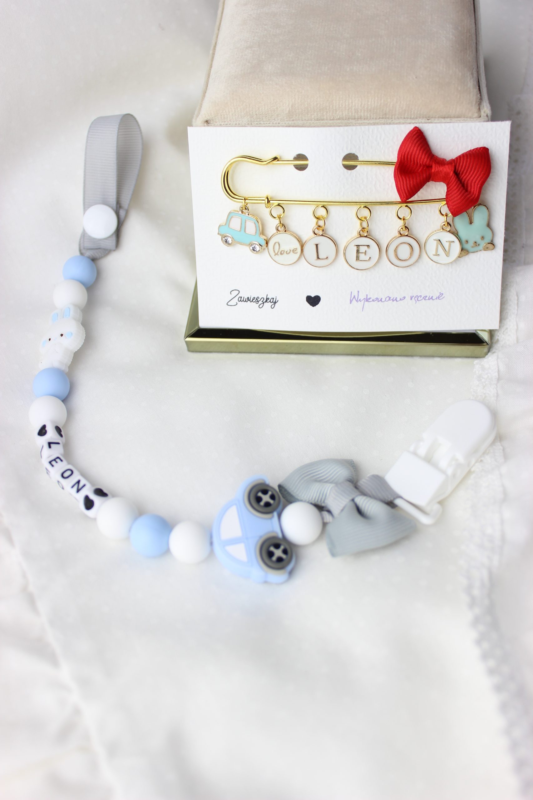 Tutaj zamawiasz produkt z dodatkami widocznymi na zdjęciu-niebieskie auto, napis love na białym, imię z 4 liter i niebieski króliczek.
