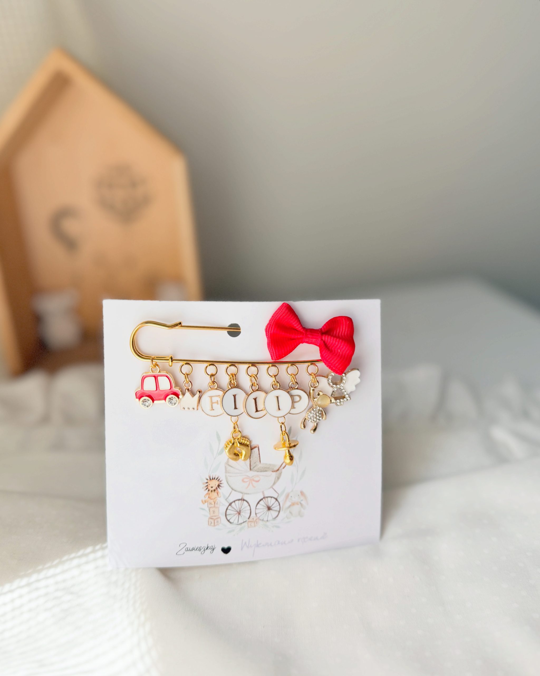 Agrafka w kolorze złotym to idealny prezent na Baby Shower lub po prostu kiedy wybierasz się w odwiedziny do nowonarodzonego dzieciątka.