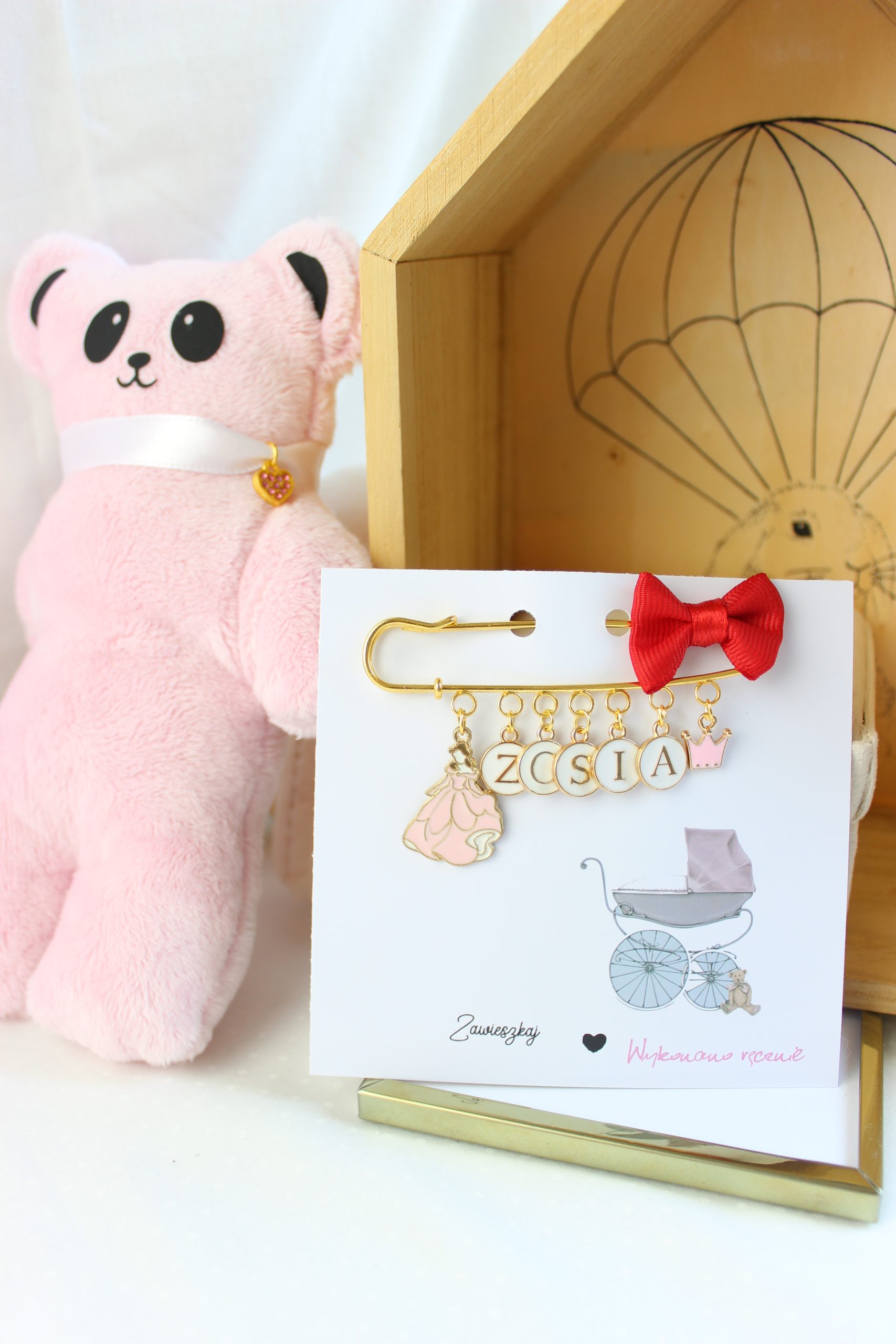 Agrafka w kolorze złotym to idealny prezent na Baby Shower lub po prostu kiedy wybierasz się w odwiedziny do nowonarodzonego dzieciątka.