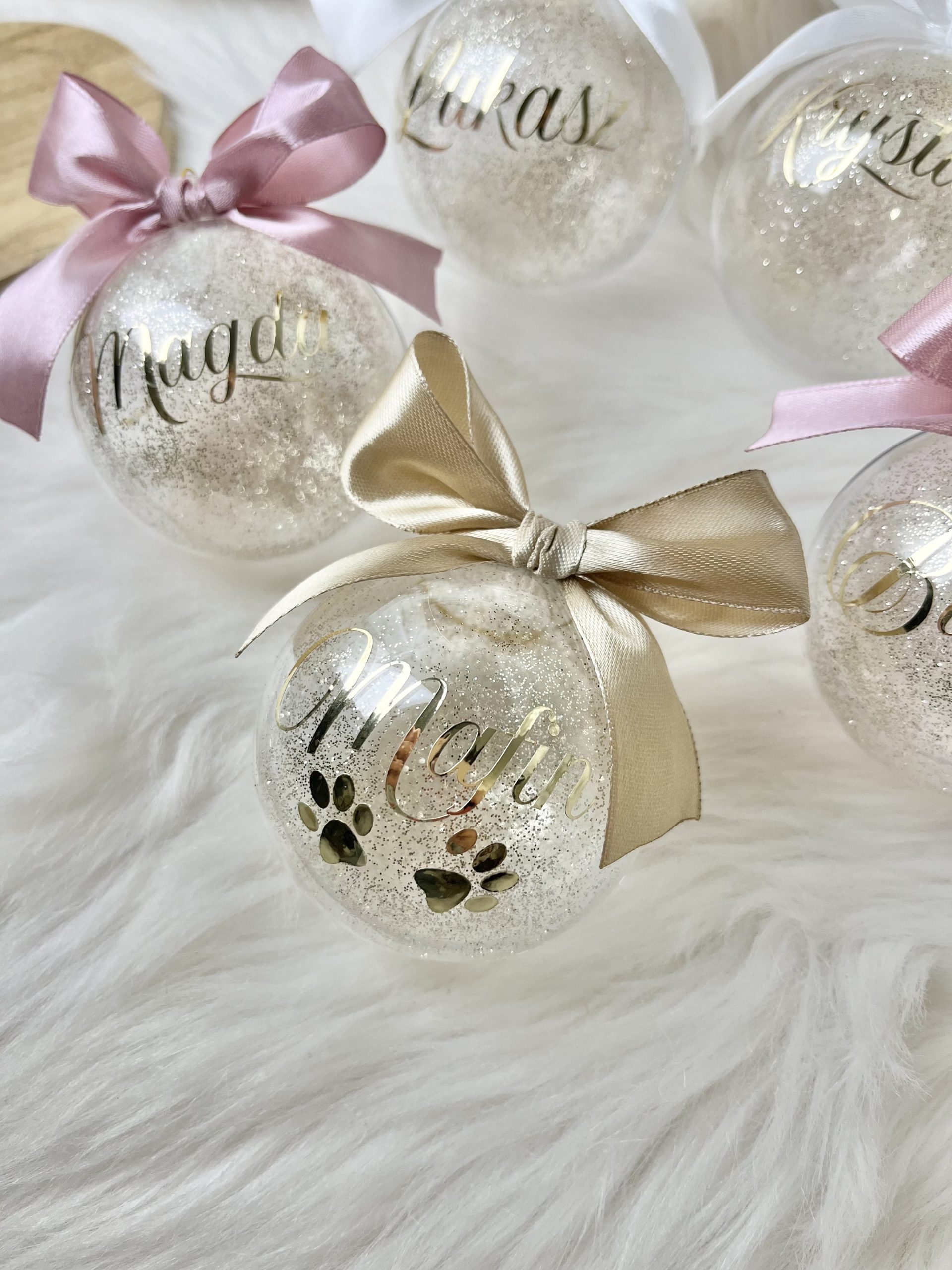 Bombka akrylowa o średnicy 7 cm, ręcznie ozdobiona.