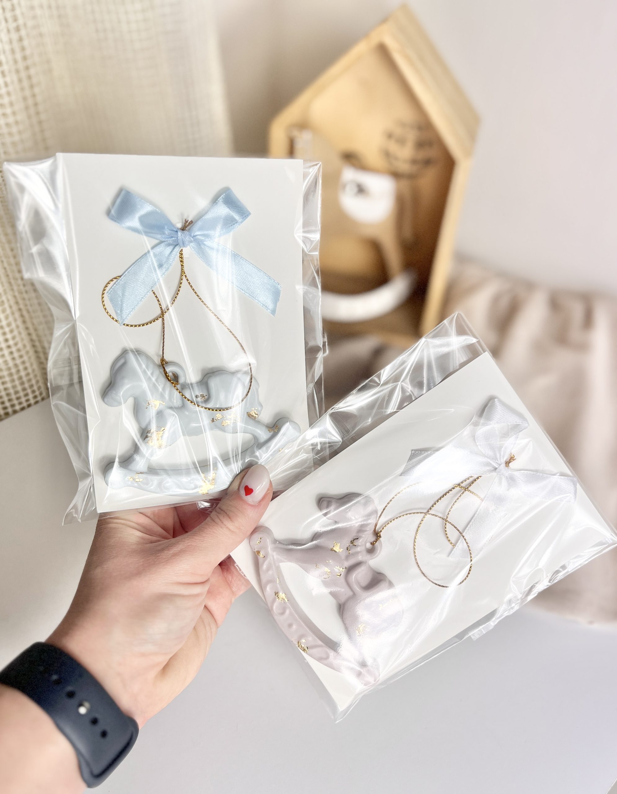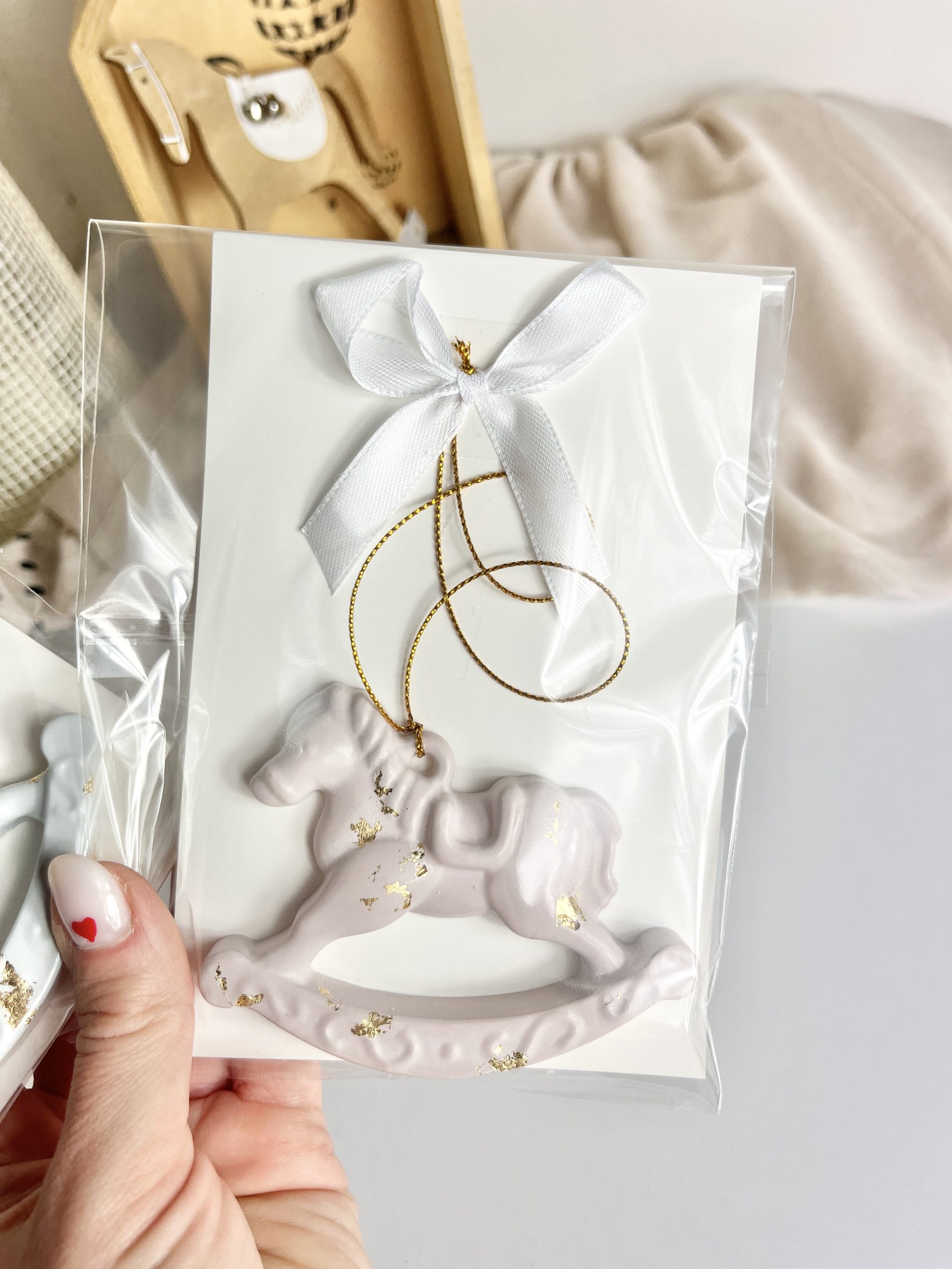 Urocza zawieszka w kształcie Konika na biegunach, wykonana ręcznie z gipsu polimerowego.