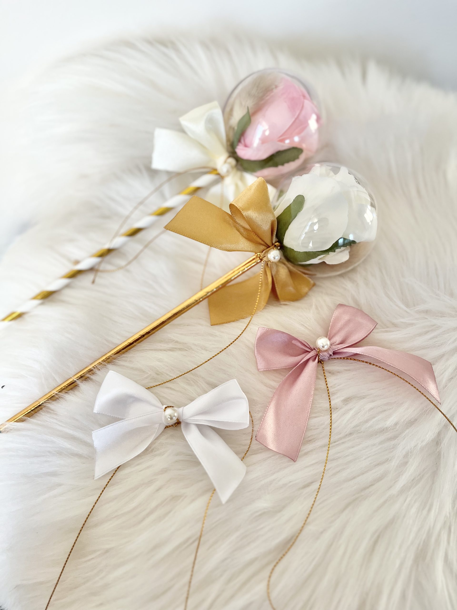 kula 7 cm, róża 6 cm, długość około 25 cm.