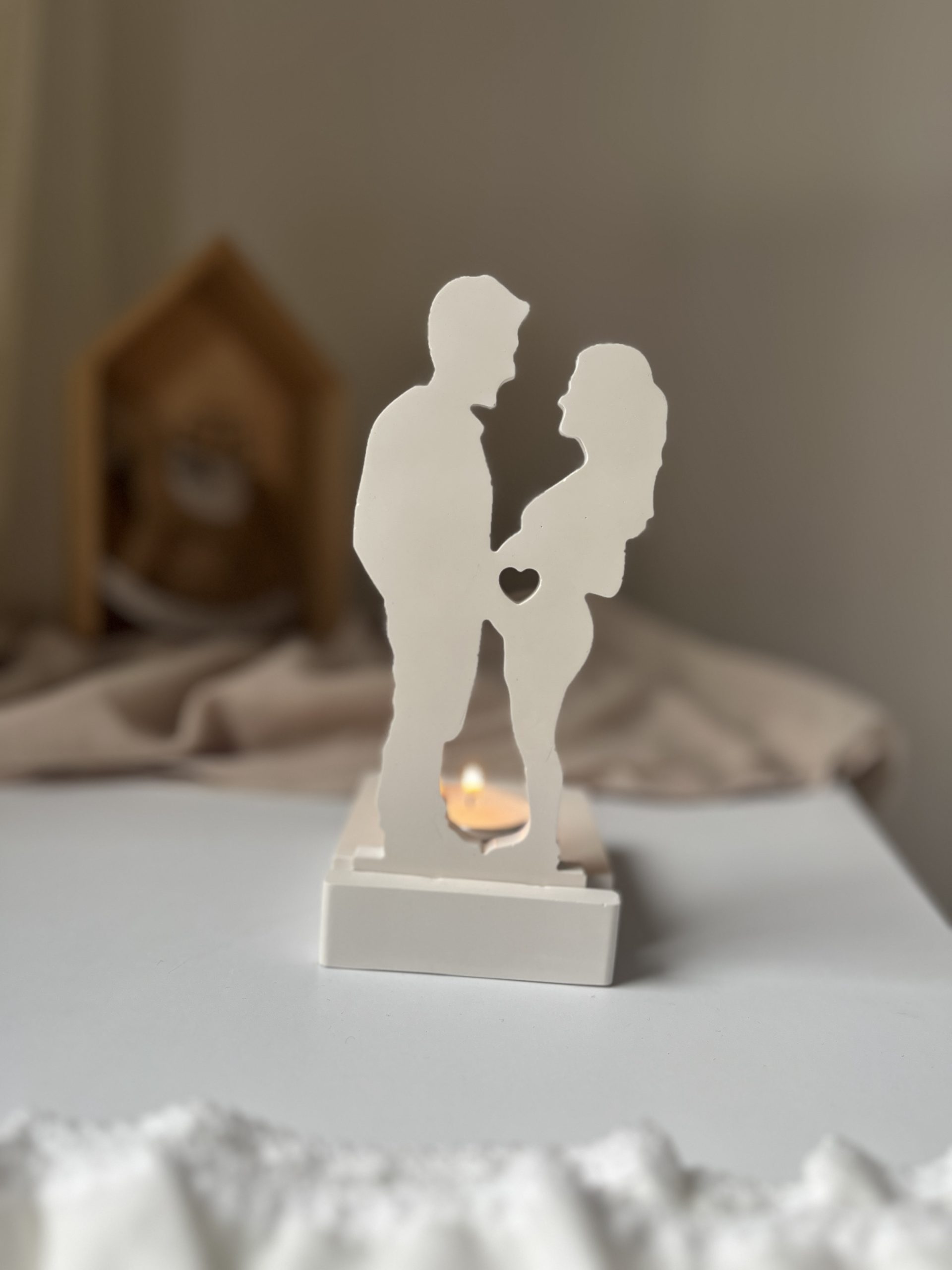 Ręcznie wykonany świecznik z gipsu polimerowego.