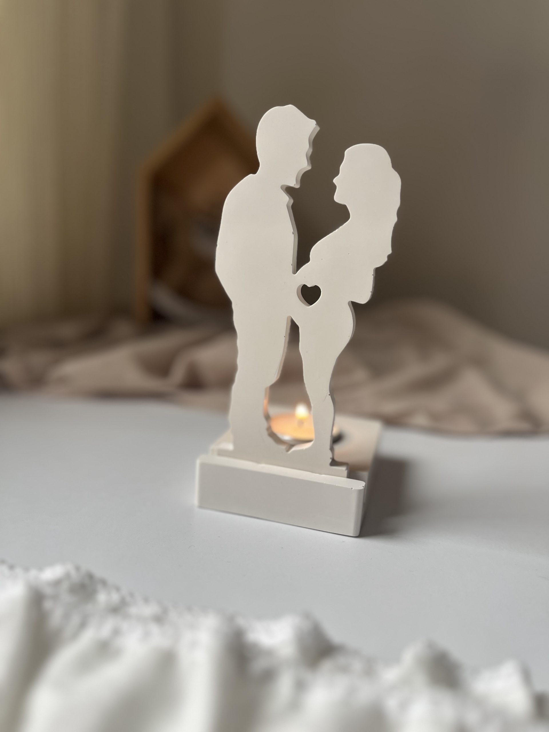 Ręcznie wykonany świecznik z gipsu polimerowego .