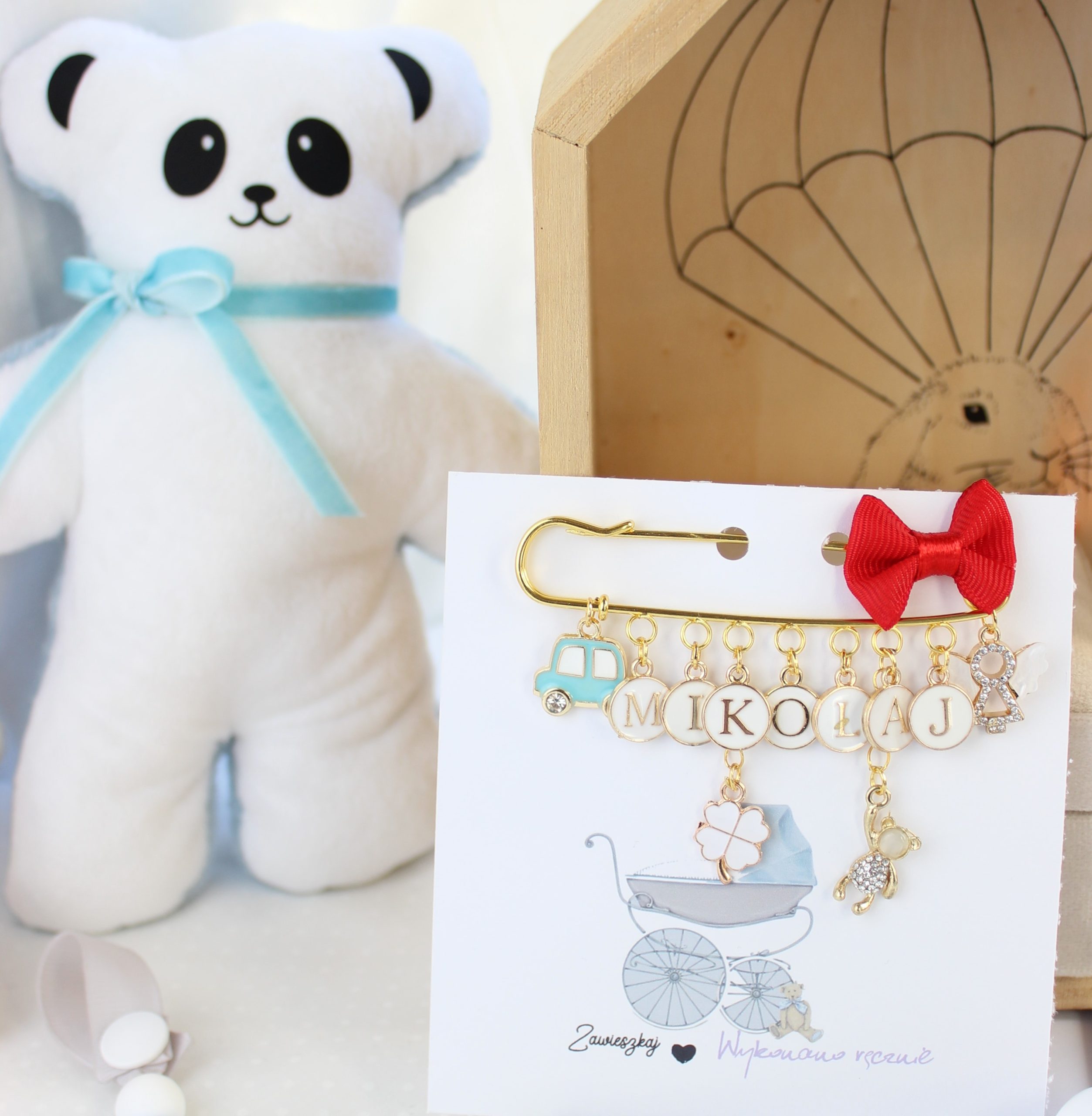 Zależy Nam, by zawieszka była bezpieczna więc musi posiadać określoną długość- jest to około 25 – max 30 cm, dlatego jeśli imię jest dłuższe, damy mniej kulek.