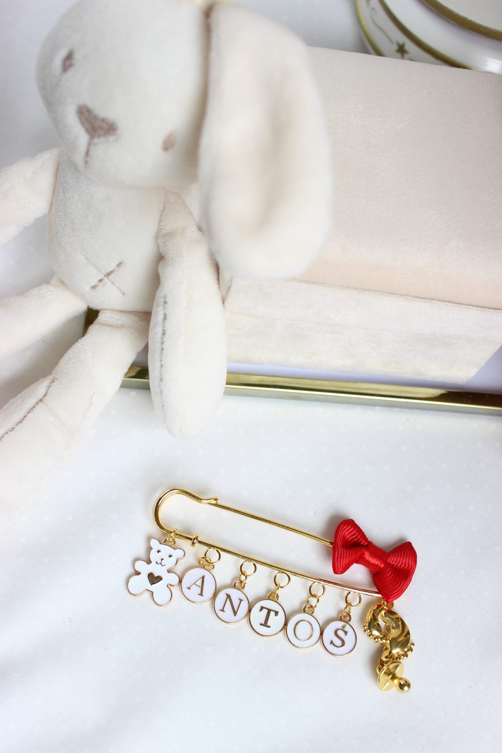 Zależy Nam, by zawieszka była bezpieczna więc musi posiadać określoną długość- jest to około 25 – max 30 cm, dlatego jeśli imię jest dłuższe, damy mniej kulek.