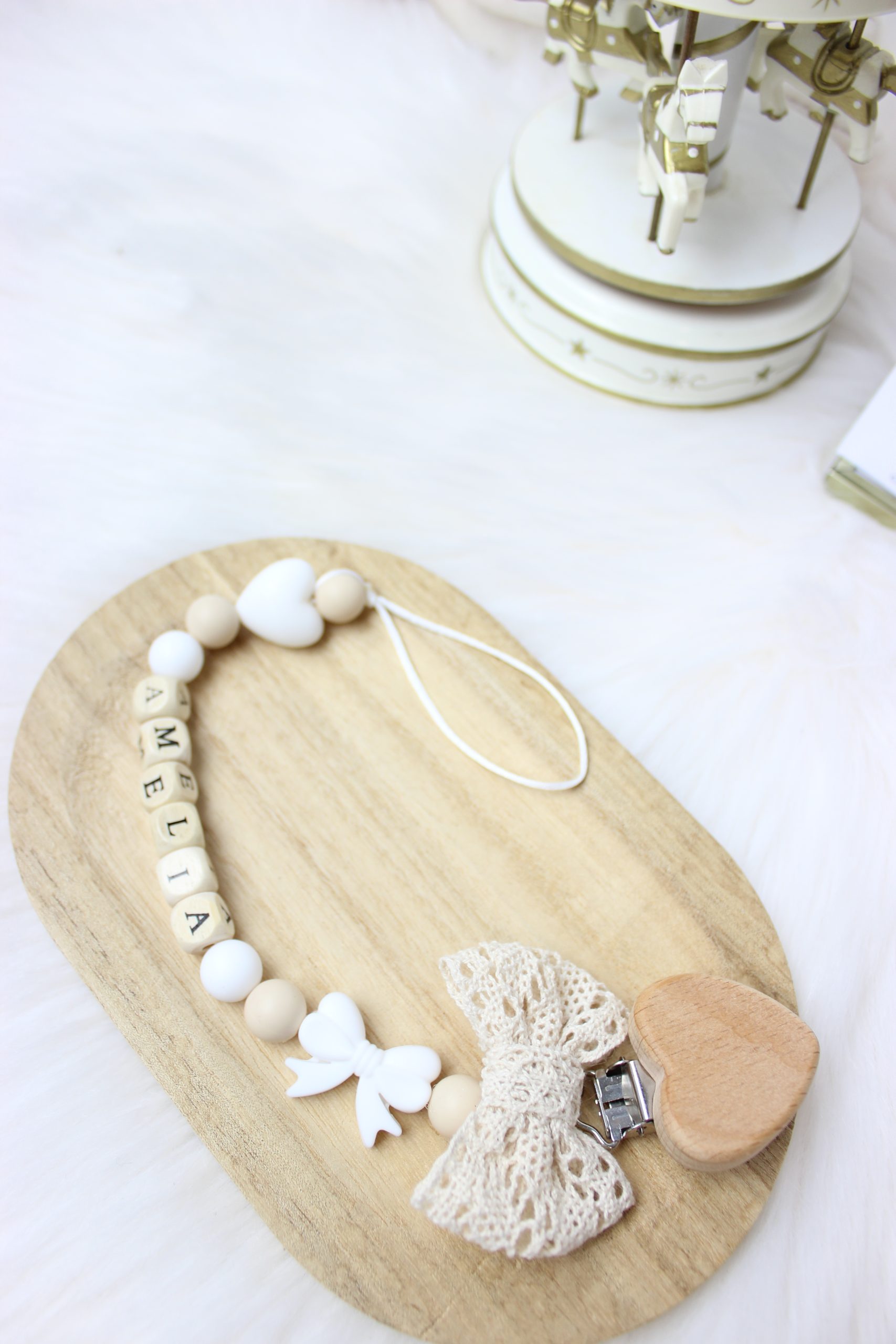 Cena dotyczy zawieszki do smoczka na tasiemce z klipsem plastikowym.