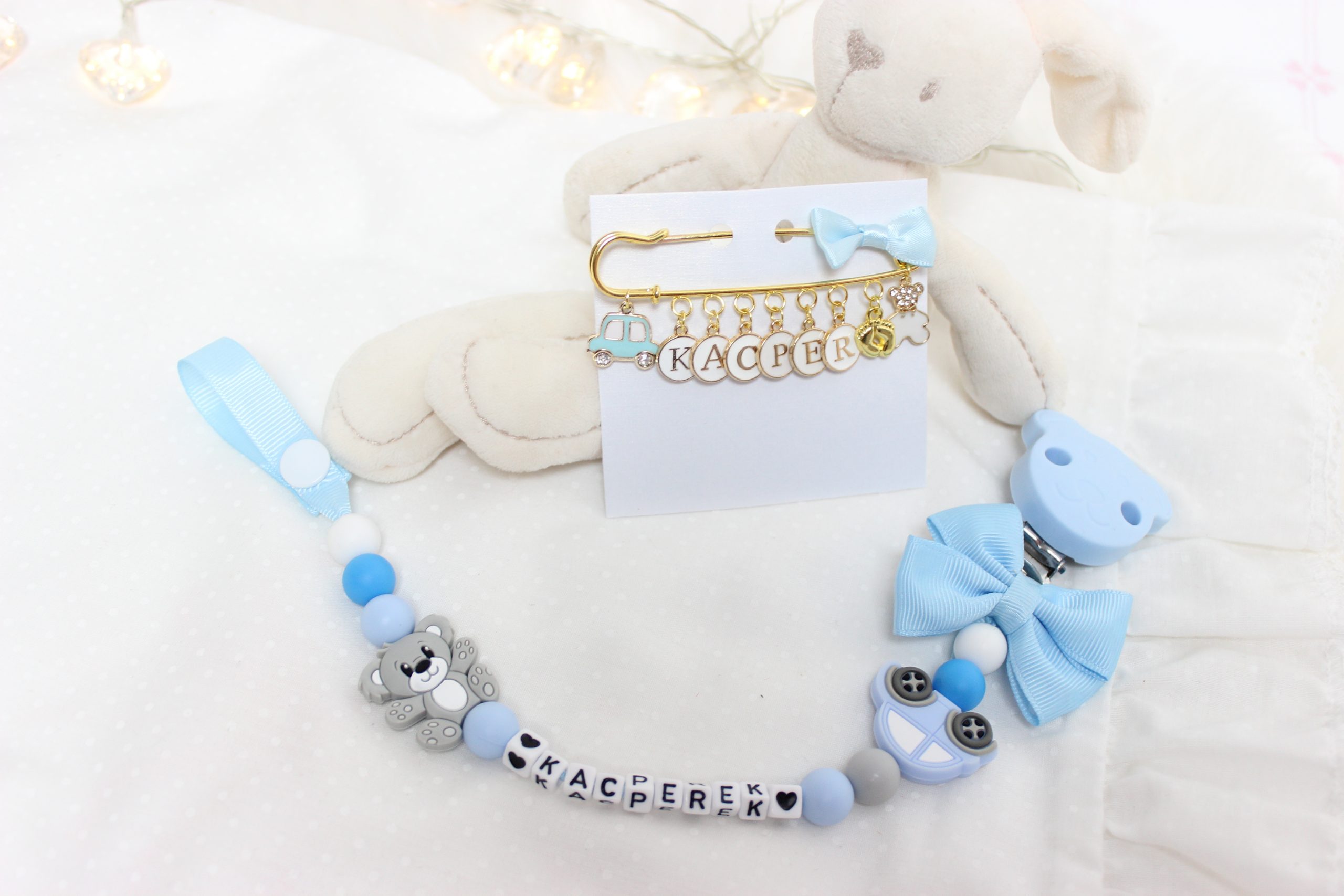 Cena dotyczy zawieszki do smoczka na tasiemce z klipsem silikonowym.